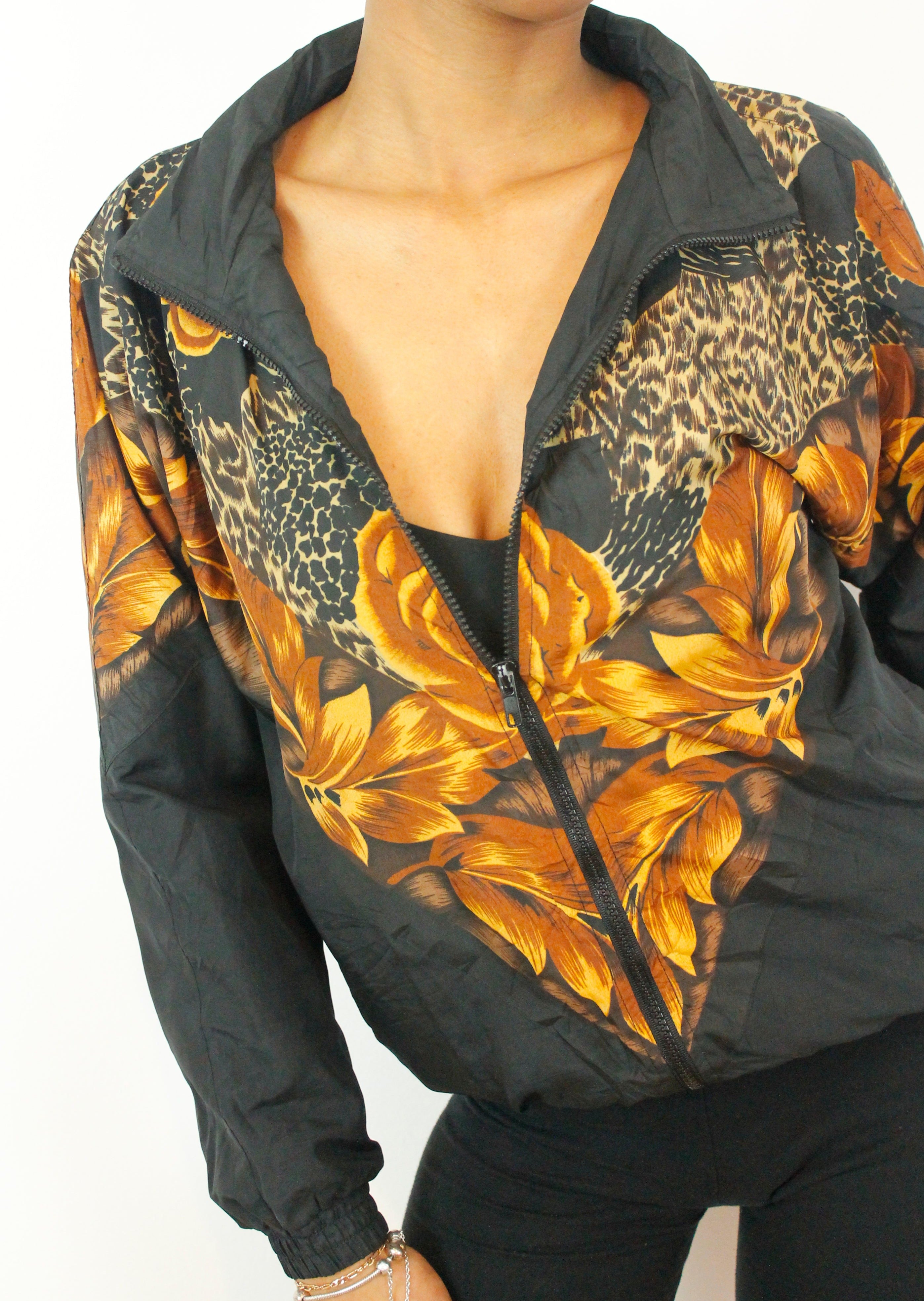 Vintage ARGEE Leopard Rose Print 90s Shell Festival Jacket